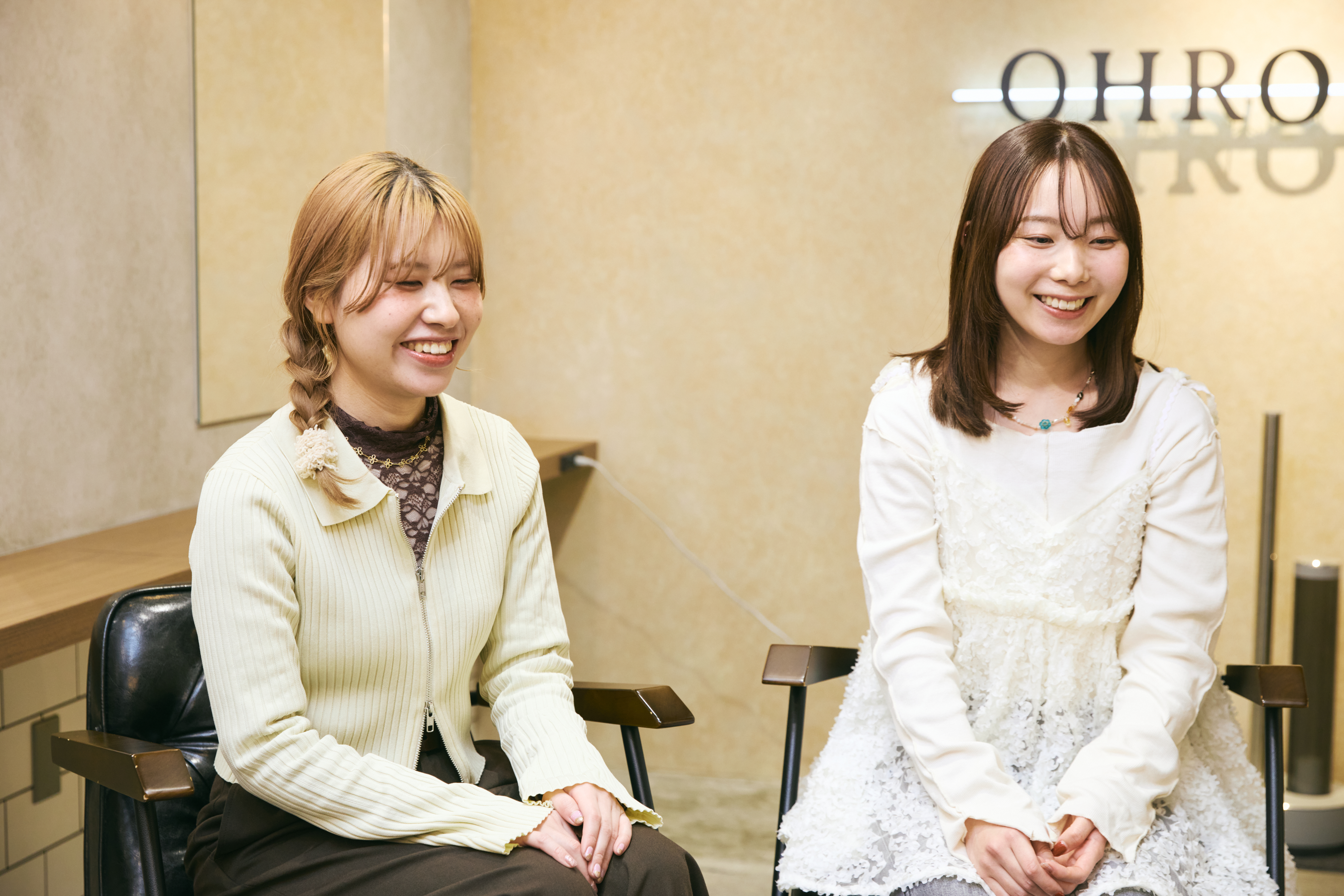 渕上さん 私は技術を一つひとつしっかりと時間をかけて学べるサロンを探していたんです。そんな中で、森口さんがリクルーターとしていろいろ話してくれたのが印象的で。スタッフにもお客さまにも優しい対応なのが気に入って、「ここだ」と思いました。