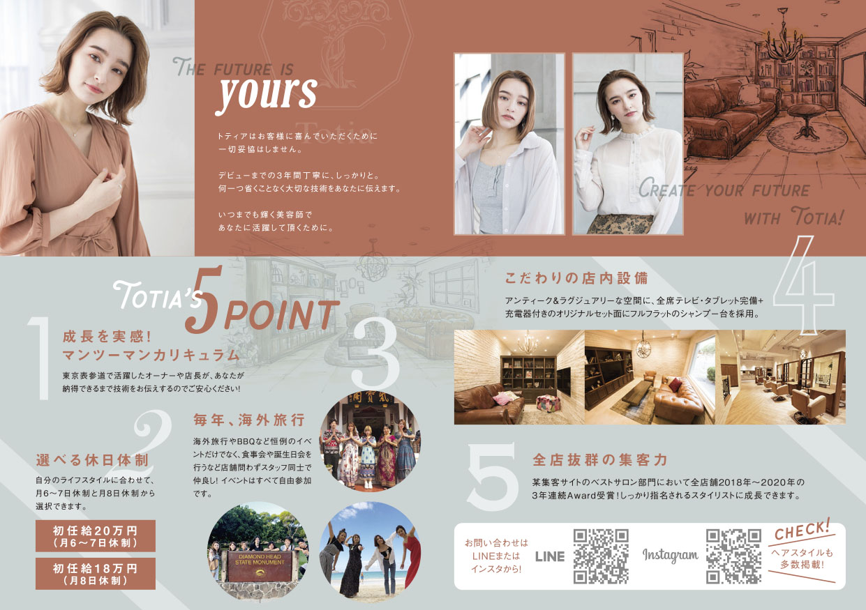 Home › 47_20011945_Totia_OL_B 2021-04-02 47_20011945_Totia_OL_B 関連記事 【Laetitia loco×中日美容専門学校】 悩んだときに気軽に相談できる。 スタッフとお客さまの優しさに包まれながら、成長できます。 他県出身者は千葉のTRUTHにナゼ集まる!? 【後編】 人気サロンの採用担当者が語る採用のポイント2021★「ALBUM」編 シェア率No.1のドライヤーメーカー「TESCOM」へ美容学生が潜入!Part.2 【noi×名古屋美容専門学校】カラーを強みに、「似合わせ」を追求するサロン
